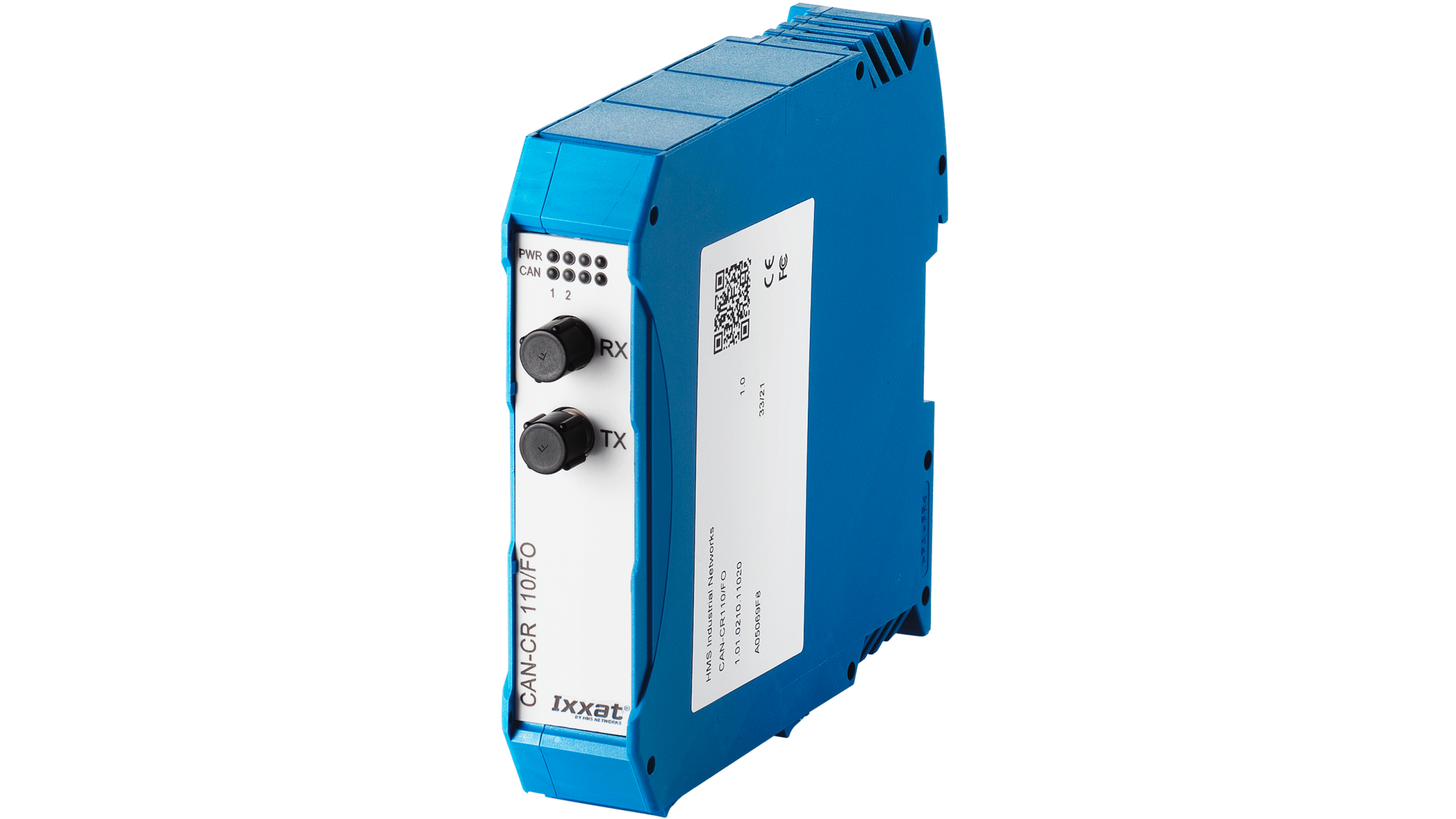 The Ixxat CAN-CR110/FO repeater with two CAN/CAN FD interfaces, one of which is a Fiber Optic interface, enables the conversion of CAN signals from copper wire to fiber optics. It enhances connectivity in high-electromagnetic interference zones and provides the flexibility to optimize network structures. With integrated termination resistors.
