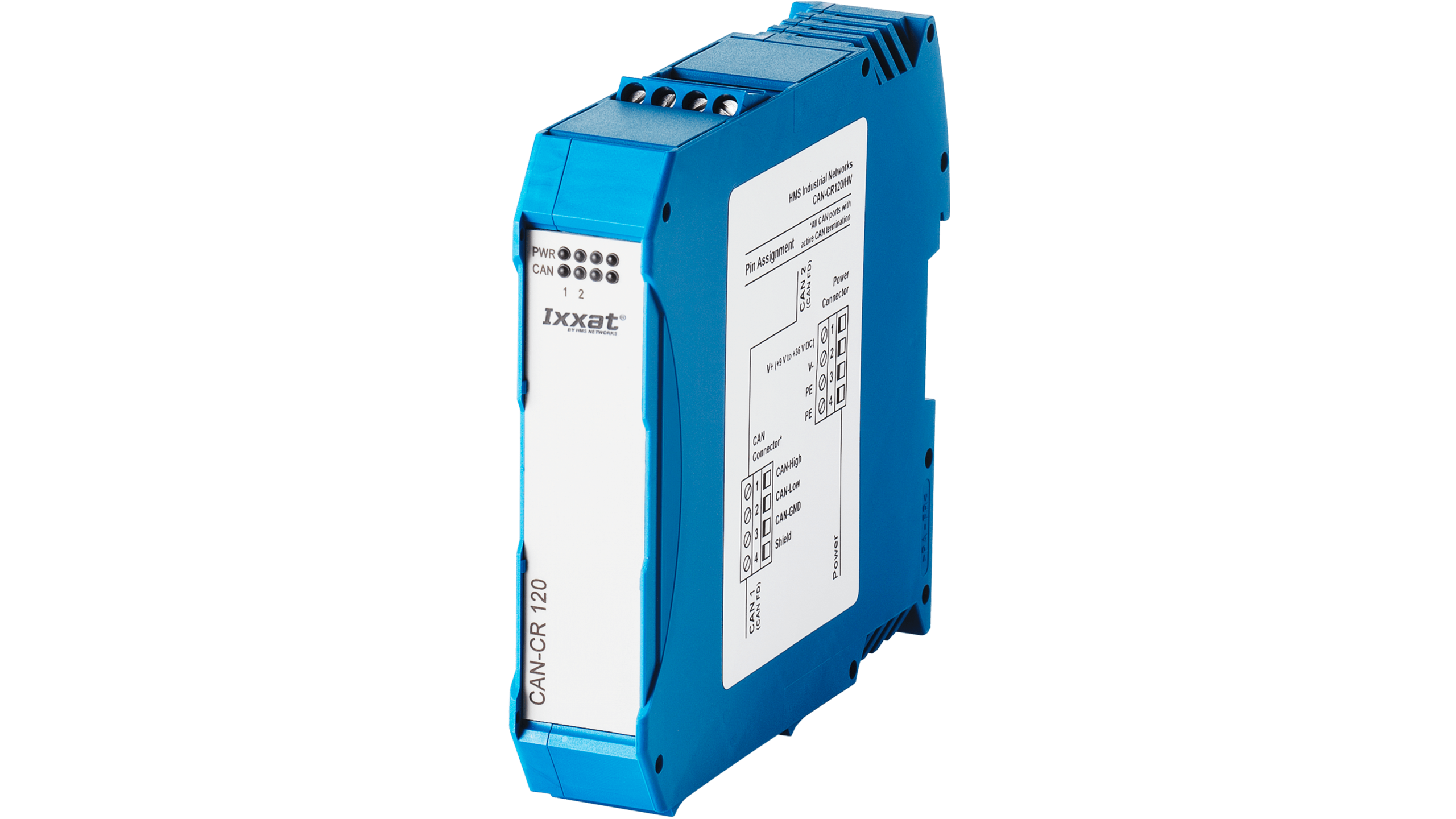 The Ixxat CAN-CR120/HV repeater with two CAN/CAN FD interfaces provides a galvanic isolation up to 3 kV for enhanced protection of network segments. It improves the CAN bus load capacity, establishes a physical coupling of bus systems and provides the flexibility to optimize network structures.